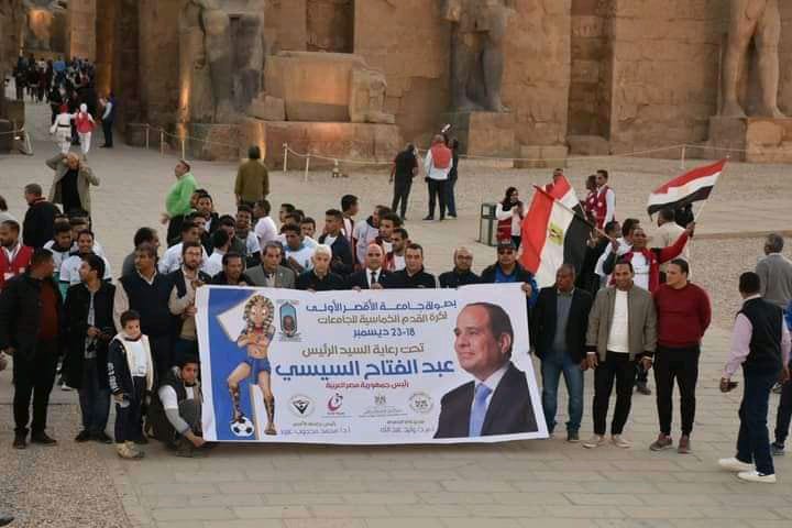 قاد الدكتور محمد محجوب عزوز، رئيس جامعة الأقصر، والدكتور وليد عبدالله، مدير البطولة، مساء السبت، مسيرة حب وتأييد دعما للسياحة بالأقصر بطريق الكباش، على هامش انطلاق بطولة جامعة الأقصر الأولى لكرة القدم الخماسية للجامعات المصرية، بمشاركة طلاب 16 جامعة مشاركة في البطولة.