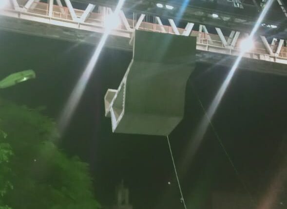 تركيب الكمر الخرساني علي الأعمدة الخاصه بمسار محطات الخط الثالث لمترو انفاق بشمال