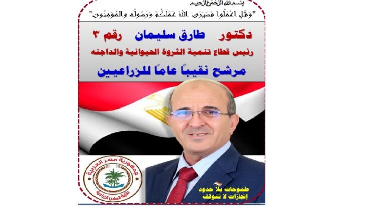 ومن أبرز المرشحين على مقعد النقيب الأستاذ الدكتور طارق سليمان توفيق سليم رئيس قطاع تنمية الثروة الحيوانية والداجنة مرشح نقيباً للزراعيين رقم (3)