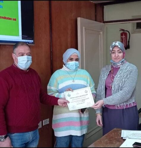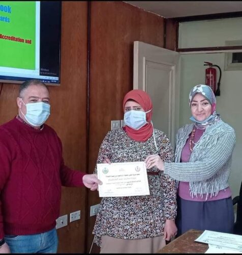 وفي نهاية الدورة التدريبية قام كل من وكيل المديرية الدكتور “احمد بغدادي”، والدكتورة “إيمان أبوعوف” مدير إدارة الجودة بالمديرية، بتوزيع الشهادات على جميع الحضور متمنيين لهم المزيد من التقدم والازدهار والنجاح.