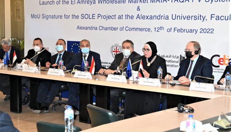 وأكد أحمد الوكيل رئيس الغرفة التجارية بالإسكندرية أن وحدة خلايا الطاقة الشمسية الكهروضوئية التي سيتم تشغيلها بسوق الجملة للخضروات والفاكهة بالإسكندرية ستعمل بقدرة 100 كيلو وات وستغطي كافة احتياجات السوق من الطاقة، لافتاً إلى أن هذا المشروع تم تنفيذه بدعم من وزارة التعاون الدولي وبتمويل من مشروع MAIA TAQA وذلك في إطار برنامج التعاون عبر حدود حوض البحر الأبيض المتوسط.