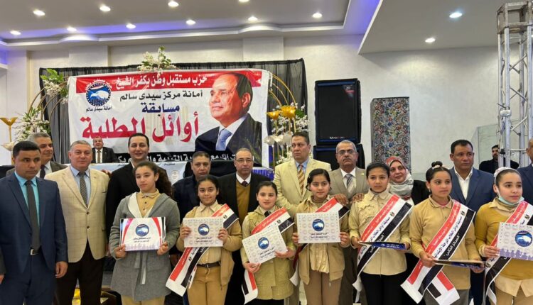 كرمت أمانة حزب مستقبل وطن بمحافظة كفرالشيخ الطلبة المتفوقين بالمدارس الفائزة فى مسابقة أوائل الطلبة بمركز سيدي سالم برعاية الحزب وإشراف مديرية التربية والتعليم
