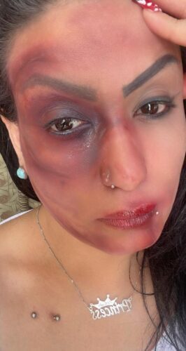 ن مكياج العروس قررت الانتقال لمرحلة أخرى وتطويع المكياج لأفكار مختلفة، فاستخدمته للتوعية بالعنف الأسرى والعنف ضد الأطفال، واستخدمته أيضًا للاحتفال بالهالووين على طريقتها الخاصة من خلال التنكر بأشهر الشخصيات المرعبة باستخدام أدوات فى غاية البساطة.