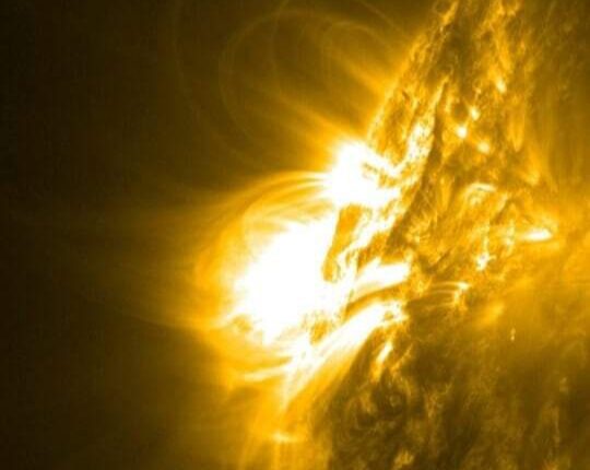 وأشارت الحمعية الفلكية أن التوهج الشمسي هو انفجار على الشمس يحدث عندما يتم إطلاق الطاقة المخزنة في الحقول المغناطيسية المتشابكة (عادة فوق البقع الشمسية) فجأة، حيث تنتج التوهجات دفعة من الإشعاع عبر الطيف الكهرومغناطيسي ، من موجات الراديو إلى الأشعة السينية وأشعة جاما.