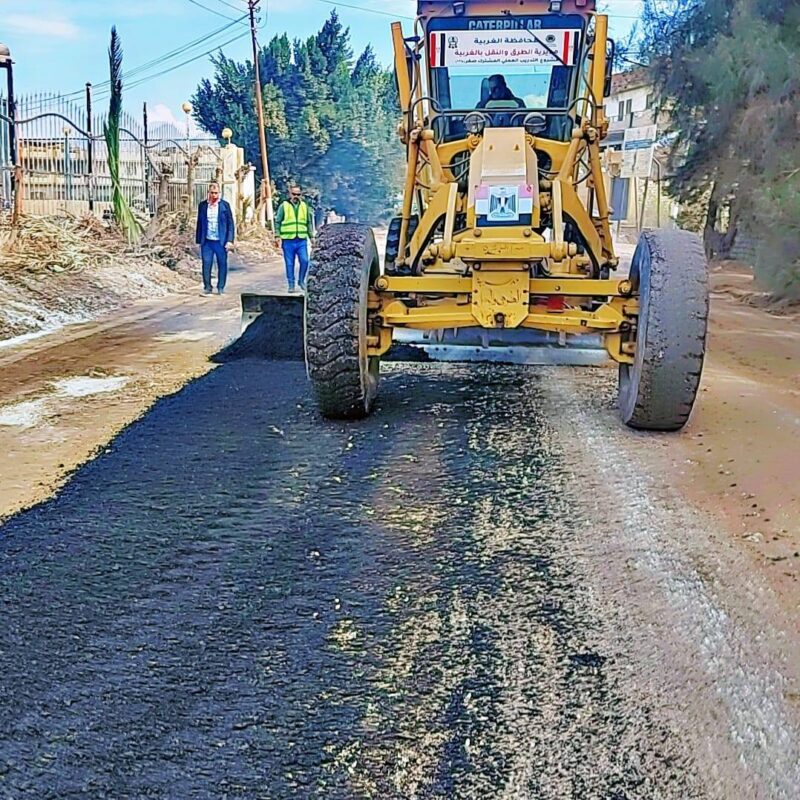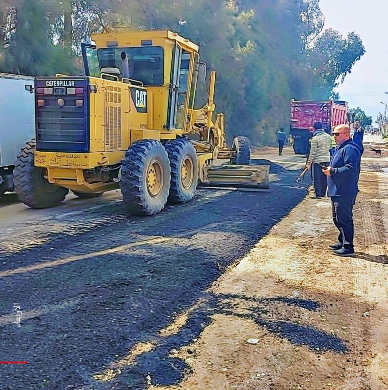 والوقوف على تقدم أعمال ترميم طريق بسيون-نجريج تحت إشراف المهندس السيد عبدالمجيد المدير العام لمديرية الطرق والمهندس حسن الالفي