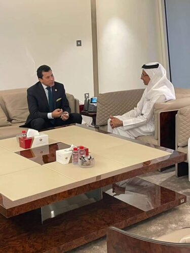 التقي الدكتور أشرف صبحي وزير الشباب والرياضة، رئيس المكتب التنفيذي لمجلس وزراء الشباب والرياضة العرب ،اليوم الثلاثاء، سعادة الوزير صلاح بن غانم العلي وزير الرياضة والشباب القطرى لبحث تعزيز التعاون الثنائي خلال الفترة المقبلة.
