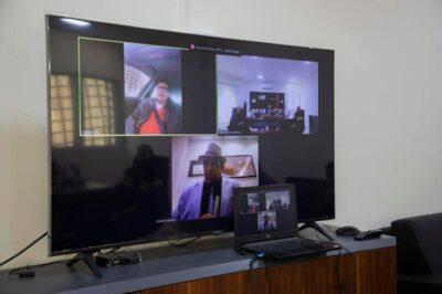 عقد معالي وزير الاستثمار بالحكومة الليبية السيد علي السعيدي اجتماع عن بُعد بمقر الوزارة رفقة مستشار الوزير الدكتور حامد الشريف ومدير إدارة الشؤون الإدارية السيد محمد لفيرس ومدير إدارة التخطيط الاستراتيجي السيد عبدالباسط العباني ورئيس قسم الدراسات والاحصاء السيدة عبير العوامي.