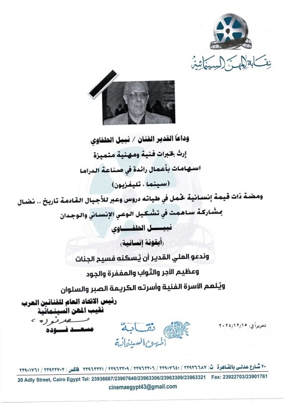 نعت نقابة المهن السينمائية برئاسة المخرج مسعد فوده