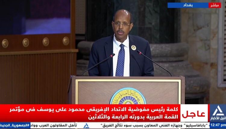 وطالب رئيس مفوضية الاتحاد الأفريقي ، في كلمته أمام القمة العربية الرابعة والثلاثين المنعقدة في بغداد بحضور الرئيس عبدالفتاح السيسي، المجتمع الدولي بوقف العدوان على الشعب الفلسطيني الأعزل واسترجاع حقوقه المسلوبة في العيش بأمن وسلام في دولته المستقلة على حدود 67 19وفقا لقرارات الشرعية الدولية.